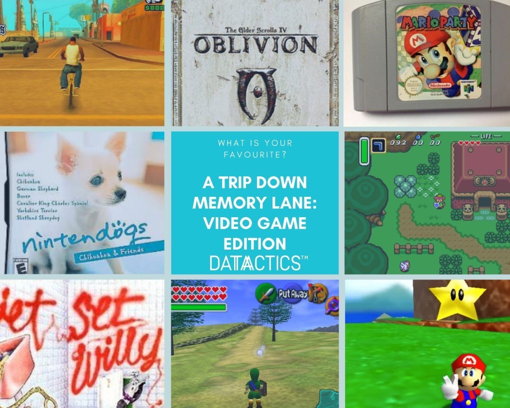 We thought we would wrap up this blog post with a bit of nostalgia. We recently asked our entire team to name a video game that reminded them of their youth! We received a plethora of responses… with some solid favourites. We would love to get your involved in our DatacticsChat, tell us, what was your favourite video game when you were younger? Will you admit to playing it, or can you even remember it?!