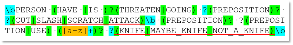 Effective semantic analysis of free text requires extensive and comprehensive dictionaries of relevant terminology – the good news is that the benefit is cumulative! We can reuse the dictionaries we’ve already created for other crime types. We’ve already got the list of verbs, and this can be added to with new terminology of different crime types, or new and changing slang across the nation.