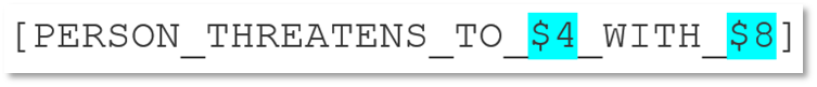 - A list of all nouns and variations of individuals will get standardised to PERSON. E.g., Suspect, Friends, Stranger, Victim > PERSON.